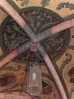 Vorhalle der Stiftskirche in Neustadt an der Weinstraße; Gewölbe-Schlussstein mit dem Wappen der Herren von Venningen