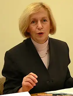 Johanna Wanka (geborene Müller; * 1. April 1951 in Rosenfeld) ist eine deutsche Mathematikerin und Professorin sowie Politikerin der CDU. Sie war von 2013 bis 2018 Bundesministerin für Bildung und Forschung. Von 2010 bis 2013 war sie niedersächsische Ministerin für Wissenschaft und Kultur, von 2000 bis 2009 Ministerin für Wissenschaft, Forschung und Kultur in Brandenburg. Davor war sie von 1994 bis zu ihrer Berufung als Ministerin gewählte Rektorin der Hochschule Merseburg. Sie war die erste und bisher einzige Ostdeutsche, die Ministerin eines westdeutschen Bundeslands war.[1]