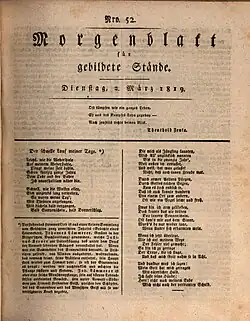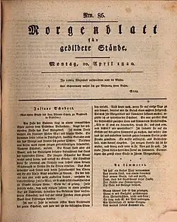 - ↑ Morgenblatt für Gebildete Stände, Jahrgang 1820, Nr. 86, Stuttgart / Tübingen: Cotta 1820, S. 345.