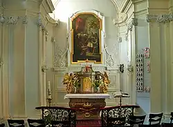 Die Gestaltung des Kapelleninneren ist einheitlich aus der Barockzeit erhalten. Das Hauptfresko in der Kuppel stellt Mariä Himmelfahrt dar. Das Ölbild an der Wand über dem Hochaltar ist ein Werk von Andreas Viso aus dem Jahr 1737 und zeigt Johannes Nepomuk vor König Wenzel.[1]