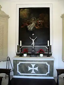 Über dem Altar befindet sich das Gemälde Martyrium des hl. Johannes von Nepomuk eines Meisters namens Witte, das auf das Jahr 1722 geschätzt wird.