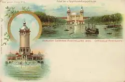 - ↑ Vergleiche etwa diese Ansichtskarte der Kunst-Anstalt Rosenblatt von der Berliner Gewerbeausstellung 1896