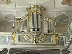 II/P 14 erhalten Neubau der Orgel im Gehäuse von Elias Hößler (1728)