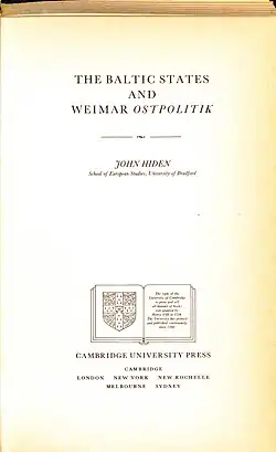 - The Baltic States and Weimar Ostpolitik. Cambridge : Cambridge University Press, 1987
