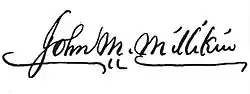 John M. Millikin, Sohn von Daniel Millikin, wurde 1804 im Greene County geboren. Die Familie Millikin zog dann ungefähr drei Jahre später nach Hamilton (Ohio), wo sein Vater der erste Arzt (physician) wurde. John M. Millikin erhielt Privatunterricht. Seine Jugend war vom Britisch-Amerikanischen Krieg überschattet. Von 1824 bis 1825 besuchte er ein Jahr lang das Washington College im Washington County (Pennsylvania).[1] Seine Zulassung als Anwalt erhielt er am 5. September 1827 und betrieb dann in der Folgezeit mit William Bebb eine gemeinsame Anwaltspraxis.[2] Als Bebb im Oktober 1846 zum Gouverneur von Ohio gewählt wurde, gab Millikin die Anwaltstätigkeit auf und zog auf seine Farm, die drei Meilen von Hamilton entfernt lag. Dort züchtete er Poland China-Hausschweine. Millikin war der erste Präsident der Ohio Poland-China Record Association und wurde einstimmig wiedergewählt. Er schrieb ein Buch zu Schweinezucht.[3]