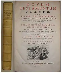 Im Jahre 1710 brachte Ludolph Küster einen Reprint von Mills Testament in Amsterdam heraus, die um die Lesarten von 12 weiteren Handschriften erweitert war (Dibdin). Weitere Titelauflagen folgte 1723 und 1746, wobei nur die Titelseite verändert wurde.[1]