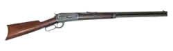Im Frühjahr 1883 schloss Browning eine Allianz mit T. G. Bennet, Vize-Präsident und Geschäftsführer von Winchester Repeating Arms Company. Die Rechte an einem von ihm entwickelten Einzellader mit Fallblock und Unterhebelbetätigung gingen an Winchester. Diese Waffe wurde unter dem Namen Winchester 1885 bekannt. Am 26. Mai 1884 meldete Browning ein Patent für einen weiteren Unterhebelrepetierer an, das ihm im Oktober 1884 mit US-Patent 306577 erteilt wurde.[3] John und sein Bruder Matt reisten nach New Haven, um die Waffe auszuliefern. Die Waffe wurde als Winchester 1886 legendär. Im Gegensatz zu den bisher hergestellten Winchestergewehren mit Kniegelenkverschluss hat sie zwei Verriegelungskeile, die seitlich in entsprechende Aussparungen im Systemkasten verriegelten, was die Verwendung von wesentlich stärkeren und vor allem längeren Patronen erlaubt. Das kleinere Modell 1892 verschoss Patronen, die auch in den damaligen Revolvern verschossen wurden.