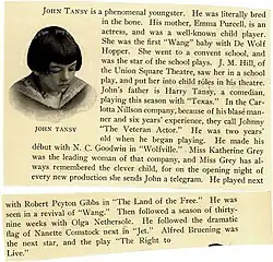 John Tansey stand wie seine Mutter Emma bereits mit zwei Jahren auf einer Theaterbühne. Um 1908 bis 1910 spielte er auf verschiedenen Bühnen des New Yorker Broadway. Seine erste Filmrolle übernahm er 1908 in David Wark Griffith’ The Red Man and the Child, einer Produktion der American Mutoscope and Biograph Company. Seinerzeit wurden die Namen der Darsteller von den Filmproduzenten nicht veröffentlicht. Das lag auch im Interesse der Schauspieler mit Theaterengagements, da sie eine drastische Minderung ihres Ansehens befürchteten. Die Filmproduzenten wollten demgegenüber ihren eigenen Namen mit den Filmen verbunden wissen, und nicht die Namen ihrer Angestellten. Die Biograph Company gehört zu den Gesellschaften, die besonders lange an der Anonymität ihrer Schauspieler festhielten. Dennoch wurden die Darsteller vom Publikum natürlich wiedererkannt, Florence Lawrence, Marion Leonard und Mary Pickford wurden nacheinander die Biograph Girls, daneben gab es das Kalem Girl, das Vitagraph Girl und andere. Auch die Kinderstars wurden mit ihren Arbeitgebern identifiziert. John Tansey wurde nach Gladys Egan und Adele DeGarde der dritte Kinderstar der Biograph Company.[1]