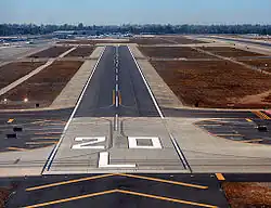 Der John Wayne Airport verfügt über zwei Start- und Landebahnen. Die Start- und Landebahn 02L/20R ist 1737 Meter lang, 46 Meter breit und verfügt über einen Belag aus Asphalt. Die parallele Start- und Landebahn 02R/20L ist 880 Meter lang, 23 Meter breit und verfügt über einen Belag aus Asphalt.[1][12] Aufgrund ihrer geringen Länge kann sie nur von der allgemeinen Luftfahrt genutzt werden.
