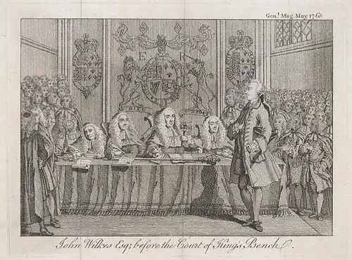 Wilkes verzichtete auf seine parlamentarische Immunität und wurde zu zwei Jahren Haft und 1000 Pfund Strafe verurteilt. Am 10. Mai 1768 wurde er inhaftiert, was wieder Massendemonstrationen in London auslöste. Wilkes wartete vergeblich darauf, begnadigt zu werden. Im Februar 1769 wurde er aus dem Parlament ausgeschlossen, aber schon im selben Monat wiedergewählt, im März wiederholte sich das gleiche. Im April wurde er ein weiteres Mal aus dem Unterhaus entfernt. Dieses Mal erklärte das Gremium den König zum Sieger und Wilkes musste ins Gefängnis.