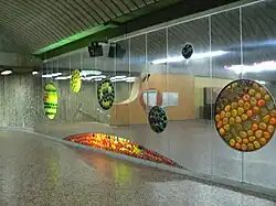 Der Architekt Marcel Raby war auch für die künstlerische Gestaltung der Station zuständig und schuf das Wandbild Thème des mouvements du soleil („Thema der Bewegungen der Sonne“). Das Werk befindet sich auf der Verteilerebene und besteht aus farbigem Glas, Kunstharz und rostfreiem Stahl. Es ist 12,3 Meter lang und 3,1 Meter hoch. Kreise mit von hinten beleuchteten Glastropfen sollen die Bewegungen des Sonnensystems symbolisieren.[3]