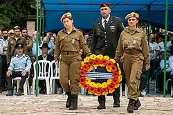 Am folgenden Morgen um 11 Uhr ertönen alle Sirenen im Land für zwei Minuten, was die Eröffnung der offiziellen Gedenkveranstaltungen und privaten Erinnerungsversammlungen, meist auf den Friedhöfen, auf denen Soldaten begraben sind, oder in Gedenkstätten (wie dem Museum der Gefangenen des Untergrunds in Akko) kenntlich macht. Gefallener Marineangehöriger wird am zentralen Marineehrenmal in Aschdod gedacht. Der öffentliche Verkehr, die Fußgänger und auch die Autofahrer bleiben dabei stehen.[2] Seit 2018 dient eine neuerrichtete Gedenkhalle auf dem Herzlberg in Jerusalem für die zentrale Gedenkveranstaltung. In der Halle sind die Namen der 23.645 Opfer seit 1860 (Stand bei Neueröffnung) auf Ziegelsteinen eingetragen.[3] Den Tag nutzen viele Menschen dazu, die Gräber ihrer verstorbenen Angehörigen zu besuchen.[4] Der Tag neigt sich zwischen 19 und 20 Uhr dem Ende zu und geht über in die Feierlichkeiten des Jom haʿAtzmaʾut auf dem Herzlberg, wo die israelische Flagge dann wieder bis ganz oben gehisst wird.