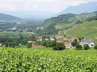 Jongieux inmitten seiner Weinberge oberhalb des Rhonetals | ||