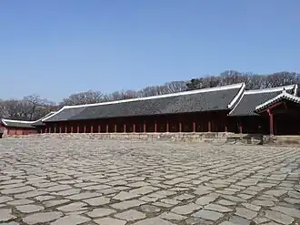 Jongmyo ist ein konfuzianischer Schrein in der koreanischen Hauptstadt Seoul. Er dient der Ahnenverehrung für die Herrscher der Joseon-Dynastie, die Korea von 1392 bis 1910 beherrschte und den Konfuzianismus in Korea förderte. 1985 wurde Jeongjeon, die Haupthalle des Schreins, mit der Registrierungsnummer 227 in die Nationalschätze Südkoreas aufgenommen, 1995 wurde der gesamte Schrein von der UNESCO zum Weltkulturerbe erklärt.[1] Das jährlich in dem Schrein abgehaltene Ritual der Ahnenverehrung und die dazugehörige Musik wurden 2008 in die Repräsentative Liste des immateriellen Kulturerbes der Menschheit eingetragen.[2]