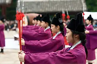 - ↑ a b Royal ancestral ritual in the Jongmyo shrine and its music. UNESCO Intangible Cultural Heritage, 2008, abgerufen am 19. Januar 2024 (englisch).