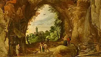 Berglandschaft mit Pilgern in einer Grottenkapelle, c. 1616, Liechtenstein Museum, Wien -