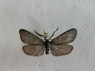 Die Falter erreichen eine Vorderflügellänge von 12,0 bis 16,0 Millimeter bei den Männchen und 9,0 bis 12,5 Millimeter bei den Weibchen. Kopf, Thorax und Abdomen sind bräunlich schwarz und haben einen bläulichen oder dunkelgrünen Schimmer. Die spitz zulaufenden Fühler der Männchen sind lang, schlank und stark gekämmt. Sie bestehen aus 39 bis 46 Segmenten. Die Fühler der Weibchen sind stark gesägt.[2] Die Färbung der Vorderflügeloberseite reicht von gelblich grün über bläulich schwarz bis zu einem dunklen Graubraun. Der Schimmer ist schwach und fehlt gelegentlich. Die Hinterflügeloberseite ist hell- bis dunkelgrau. Die Flügelunterseiten sind hell- bis dunkelgrau und wenig bis gar nicht mit glänzenden Schuppen versehen.
