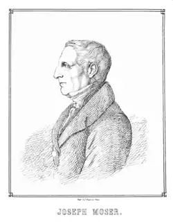 - Constantin von Wurzbach: Moser, Joseph. In: Biographisches Lexikon des Kaiserthums Oesterreich. 19. Theil. Kaiserlich-königliche Hof- und Staatsdruckerei, Wien 1868, S. 145 f. (Digitalisat).