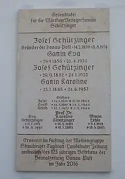 Die bisher von der Cl. Attenkofer’sche Verlagsanstalt in Wörth erschienene Wörther-Volkszeitung wurde mit der Donau-Post vereinigt, die ebenfalls von Schützinger erworbene Zeitung Falkensteiner Waldbote mit der Falkensteiner Volkszeitung. Weiter wurde noch das Neue Aufhausener Tagblatt erworben.