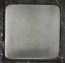 - Am 10. September 2015 erfolgte in Brünn die Verlegung eines Gedenksteines vor seinem ehemaligen Wohnhaus in der Tvrdého 8/564 mit folgender Inschrift (rechts die Übersetzung):