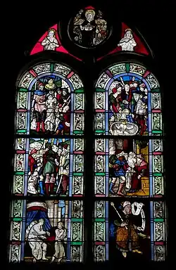 Das Fenster Nr. 11 im Chor wurde von einer unbekannten Werkstatt geschaffen. Es zeigt auf zwei Lanzetten das Leben Josefs, zweitjüngster Sohn des Erzvaters Jakob und einer der Stammväter der Zwölf Stämme Israels, aus dem Alten Testament. Der König rechts unten stammt aus dem Fenster Nr. 5, das die Wurzel Jesse darstellt.
