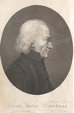 - Johann Michael Sailer: „Joseph Anton Sambuga wie er war“, München, Verlag Jakob Giel, 1816. Online bei Google Books.