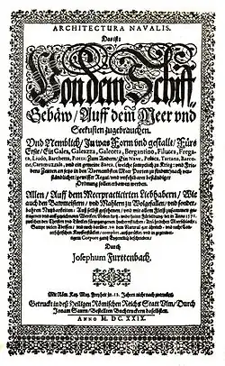 - Joseph Furttenbach: Architectura navalis. Das ist von dem Schiffgebäw, auff dem Meer und Seekusten zu gebrauchen… Ulm 1629 Digitalisat