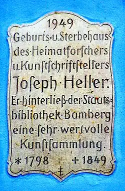 - Friedrich Leitschuh: Joseph Heller und die deutsche Kunstgeschichte. In: ders.: Katalog der Handschriften der Königlichen Bibliothek zu Bamberg. Band 2: Die Handschriften der Helleriana. Leipzig 1887, S. I–LIV, Digitalisat.