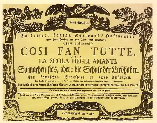 Ein anderer Aspekt dieser Bemühungen ist seine Kunstpolitik. So wurde das Burgtheater zum deutschen Nationaltheater erklärt und der Komponist Wolfgang Amadeus Mozart wurde 1781 beauftragt, mit der Entführung aus dem Serail die Gattung des Singspiels in deutscher Sprache auf künstlerisch ernstzunehmendes Niveau zu heben. Die Zusammenarbeit mit Mozart wurde auch in den folgenden Jahren beibehalten, als das Genre des Deutschen Singspiels sich nicht durchgesetzt hatte. 1786 genehmigte er die Uraufführung der Mozart-Oper Le nozze di Figaro (nach dem aufrührerischen Stück Der tolle Tag des Franzosen Beaumarchais, dessen Kritik an den Adelsvorrechten mit der Politik des Kaisers sehr gut zusammenging). 1789 erteilte er Mozart auch den Auftrag zu dessen Oper Così fan tutte.[12]