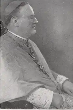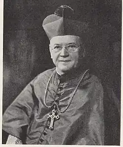 Schon am 11. August des gleichen Jahres bestellte Papst Pius X. Schrembs zum ersten Oberhirten der neu gegründeten Diözese Toledo. Hier wirkte er 10 Jahre, bis er am 16. Juni 1921 zum Bischof von Cleveland mit Sitz in der kulturell stark deutsch dominierten Stadt Cleveland ernannt wurde. Kardinal Michael von Faulhaber besuchte ihn dort bei seinem USA-Aufenthalt 1923 und nennt ihn im Reisebericht „den treuen Freund seiner Heimat“ (Faulhaber: Meine Caritasreise nach Amerika). In der Tat kam Joseph Schrembs öfter zu Besuchsaufenthalten in sein Vaterland; belegt sind u. a. Kuraufenthalte im Haus der Mallersdorfer Schwestern in Bad Wörishofen[2] und Visiten bei der stigmatisierten Therese Neumann in Konnersreuth. 1925 hielt sich der deutsch-amerikanische Oberhirte anlässlich des Hl. Jahres in Rom auf und erhielt für die Kathedrale seiner Diözese die Reliquien einer in den Katakomben entdeckten, römischen Märtyrerin, der Hl. Christine.[3] Sie wurde zur Diözesanpatronin von Cleveland. 1926 nahm er am XXVIII. Internationalen Eucharistischen Kongress in Chicago teil. Dabei präsidierte er u. a. eine Großveranstaltung der deutschsprachigen Sektion des Kongresses am 20. Juni, auf der Kardinal Michael von Faulhaber, Bischof Wilhelm Berning von Osnabrück, der österreichische Bundeskanzler Prälat Ignaz Seipel und Caritasdirektor Benedikt Kreutz aus Freiburg im Breisgau Ansprachen hielten (Deutschsprachige Festschrift, 1926, Seite 46/47). Bischof Schrembs unterstützte nachhaltig die beabsichtigte Seligsprechung der Indianerin Kateri Tekakwitha, die jedoch erst 1980 erfolgte. Bekannt ist auch seine schroffe Wertung der amerikanischen Prohibition als „Akt des Fanatismus“, die sicherlich auf seine bayerische Abstammung zurückzuführen ist. Als der amerikanische Physiker Charles Francis Brush die Geburtenkontrolle eine „Bereicherung der menschlichen Wissenschaft“ nannte, verurteilte Joseph Schrembs diese Ansichten mit der Erwiderung: „Früher sprachen wir von den Menschen als der besonderen Kreatur, aber gemäß dieser Auffassung sind sie nicht anders einzuordnen, wie die Zuchttiere auf einer Farm… Nach dieser Einschätzung hätte ich als jüngstes von 16 Kindern wohl kein Recht gehabt, überhaupt geboren zu werden und doch sage ich, Gott segne meine Mutter für jedes von uns!“ Am 25. März 1939 zeichnete Papst Pius XII. den Prälaten Joseph Schrembs mit dem persönlichen Titel eines Erzbischofs aus. 1942 wurde Edward Francis Hoban sein Koadjutorbischof, der ihm nach seinem Tode als Bischof von Cleveland im Amt nachfolgte.