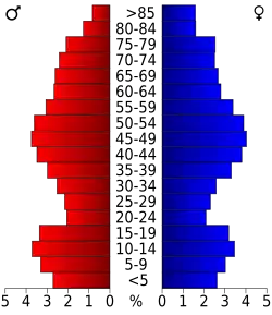 Auf das gesamte County bezogen setzte sich die Bevölkerung zusammen aus 23,1 % Einwohnern unter 18 Jahren, 6,5 % zwischen 18 und 24 Jahren, 23,2 % zwischen 25 und 44 Jahren, 27,2 % zwischen 45 und 64 Jahren und 20,1 % waren 65 Jahre alt oder darüber. Das Durchschnittsalter betrug 43 Jahre. Auf 100 weibliche Personen kamen 94,60 männliche Personen, auf 100 Frauen im Alter ab 18 Jahren kamen statistisch 91,10 Männer.