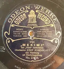 Josef Rosenblatt machte zunächst Walzenaufnahmen für Artistical Record (Wien 1905), die die Firma Pathé später auf Platten übertrug; während seiner Tätigkeit in Hamburg entstanden einige Plattenaufnahmen für Odeon und Jumbo (Berlin 1908–09). Ab 1913 erschienen in den USA zahlreiche Platten für Vicor (1913, 1920–30) und Columbia (1914–18).
