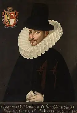 Juan de Mendoza wurde in eine wohlhabende spanische Adelsfamilie geboren. Sein Vater starb, als er noch klein war; die Mutter übernahm seine Erziehung. Er trat in die Dienste der spanischen Krone und nahm am Feldzug des Herzogs von Alba in Portugal teil. 1591 wurde er in den Orden von Santiago aufgenommen und amtierte als Gouverneur von Sevilla.