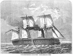 Die Panzerfregatte Don Juan d’Austria, 1864. Nach einer Zeichnung von N. Großer.
