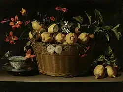 Das dritte signierte Gemälde ist ein Stillleben mit Früchtekorb und Kardone in der Gösta Serlachius Fine Arts Foundation in Mänttä (Finnland); es trägt die Signatur “D. Juan de Zurbarán, faciebat/1643”.[6]