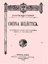 1890 gibt sie die Cocina ecléctica (Eklektische Küche)[36] heraus, ein Sonderfall innerhalb ihres literarischen Schaffens, denn es sind 200 Kochrezepte, die sie von verschiedenen Reisen mitgebracht hat oder die ihr geschickt worden sind. Gorriti entschuldigt sich im Vorwort, dass sie nie eine gute Hausfrau gewesen ist, weil sie immer in der Welt der Bücher gelebt hat, und dass sie dies jetzt durch das vorliegende Buch wiedergutmachen will.[37] Sie versteht dieses Werk durchaus auch in Konkurrenz zu La cocina española antigua ihrer spanischen Schriftstellerkollegin Emilia Pardo Bazán.