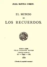 - ↑ Das Geburtsdatum der Autorin ist umstritten; in einigen Literaturgeschichten werden auch das Jahr 1818 und der 15. Juni genannt. Nach Aussagen in der Dissertation von Hebe Beatriz Molina 1999 erscheint der Geburtstermin 16. Juli 1816, während des so genannten Congreso de Tucumán, sehr wahrscheinlich (siehe die dort genannten Argumente: Molina, Hebe Beatriz (1999): La narrativa dialógica de Juana Manuela Gorriti. Mendoza: Ed. de la Facultad de Filosofía y Letras de la Univ. Nacional de Cuyo, S. 471–472), es gibt aber durchaus seriöse Quellen, die den 15. Juni 1818 aufführen, und dieses Datum taucht auch auf einigen Gedenksteinen, Statuen etc. in ihrer Heimatprovinz auf. Weniger wahrscheinlich ist das Jahr 1812, das als dritte Alternative von Graciela Batticuore in ihrer Ausgabe von Briefen Juana Manuela Gorritis an Ricardo Palma genannt wird (Cincuenta y tres cartas inéditas a Ricardo Palma. Fragmentos de lo íntimo. Buenos Aires - Lima: 1882-1891. Edición crítica, estudio preliminar, coordinación de dossier y diccionario a cargo de Graciela Batticuore. Notas en colaboración con César Salas Guerrero. Lima: Universidad de San Martín de Porres, 2004, S. XXV.). Es scheint so zu sein, dass die Autorin selbst in einer Art ‚romantischer Koketterie‘ in ihren Memoiren ihr Alter um zwei Jahre‚ zurückgedreht‘ hat, um jünger zu erscheinen, als sie tatsächlich war.