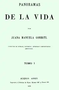 Die Romanserie Panoramas de la vida (Panoramen des Lebens) erscheint 1876 in Buenos Aires.[29] Der Untertitel: „Novelas, fantasías, leyendas y descripciones americanas“ ist zugleich Hinweis auf verwendete Gattungen: Romane, Phantasien, Legenden und südamerikanische Landschaftsbeschreibungen. Teilweise sind auch phantastische Erzählungen, Kindheitserinnerungen und Reiseschilderungen darin enthalten. Der wichtigste Text der Sammlung heißt Peregrinaciones de un alma triste (Pilgerschaften einer traurigen Seele): Der Titel erinnert an Peregrinaciones de una paria (1838) von Flora Tristan, einer französisch-peruanischen Autorin, die über ihren vergeblichen Versuch berichtet, in Peru in der väterlichen Familie legitimiert zu werden, ein Buch, das der Zensur und der öffentlichen Verbrennung zum Opfer gefallen war.[30] Der Text ist den „Damen von Buenos Aires“ gewidmet. Die Rahmenhandlung bilden Gespräche zwischen zwei Freundinnen, die zwar Argentinierinnen sind, sich aber in Lima befinden; diese schaffen ein intimes Ambiente, ihr Zusammensein erzeugt sozusagen den Text. Modell ist für Gorriti Tausendundeine Nacht, denn die Hauptfigur Laura, die ihre Abenteuer erzählt, identifiziert sich mit Scheherazade, die sich ebenfalls durch Erzählen vor dem Tod rettet.[31] Laura kann sich durch das Erzählen „gesund schreiben“: Sie litt an Tuberkulose, die zur damaligen Zeit unheilbar war. Sie bricht aus den Familienbanden aus und wird zu einer „Pilgerin“, zu einer Reisenden, die ihr Leben selbstbestimmt in die Hand nimmt.