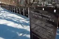 Die 2009 eingeweihte Gedenkstätte wurde von den Vorarlberger Architekten Ada und Reinhard Rinderer gestaltet. Rötlich-braune, mit Davidsternen versehene Stahlplatten markieren den Verlauf der alten Friedhofsmauer. Die Platten umfassen den Platz auf drei Seiten, auf der Westseite geht das Gelände in einen leichten Abhang über. An der Stelle des ehemaligen Eingangs auf der Südseite befindet sich eine symbolische Tür. Eine Gedenktafel weist auf die Geschichte des Friedhofs hin.