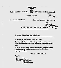 Schreiben Martin Bormanns zum öffentlichen Umgang mit der Judenfrage