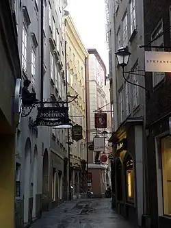 Die Judengasse ist neben der Getreidegasse eine bekannte Geschäftsstraße. Hier befinden sich viele Läden in alten mittelalterlichen Gewölben. Es gibt auch auf der Seite gegen die Salzach einige Nachtlokale und Irish Pubs. Der Rudolfskai an der Salzach kann über diese Lokale erreicht werden. Daneben gibt es unter anderen das Hotel zum Mohren, die Goldene Ente und andere bekannte Altstadthotels.