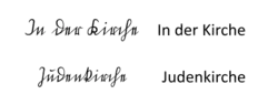 Laut Paul Schwendinger soll die Steinformation im Volksmund ursprünglich „In der Kirche“ geheißen haben, erst „durch ungenaue Aufschreibung“ (womöglich in Sütterlinschrift, siehe Abbildung rechts) sei hieraus später der Name Judenkirche entstanden.[2]