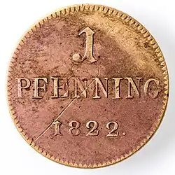 Im Juli 1822 genehmigte das hessische Finanzministerium die Fortsetzung der Prägung. Bis August 1822 wurden für 6645 Gulden Pfennige geschlagen. Im September baten die Gebrüder Heitefuss auf Veranlassung ihres ungenannten Hauptabnehmers um das Beenden der Prägung.[12]