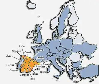 In weiteren Regionen Spaniens gibt es Juderías in Hervás (Cáceres), heute ebenfalls eine der besser erhaltenen, in Córdoba, Sevilla, Jerez de la Frontera, Toledo[9] Málaga und Cuéllar (siehe Karte).