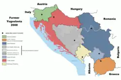 Am 4. Februar 2003 wurde die Bundesrepublik Jugoslawien durch die territorial und aus völkerrechtlicher Sicht identische Staatliche Gemeinschaft Serbien und Montenegro abgelöst.[3] Die Staatenunion von Serbien und Montenegro, deren Rechtsnachfolge Serbien antrat, löste sich 2006 mit dem Ausscheiden Montenegros auf, sodass heute alle früheren Teilrepubliken der Sozialistischen Föderativen Republik Jugoslawien unabhängige Staaten darstellen. Am 17. Februar 2008 erklärte auch das Kosovo seine Unabhängigkeit von Serbien.