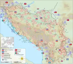 | Heeresgruppe 2 (Sremska Mitrovica) | 1. Armee (Novi Sad) | 7. Division „Potiska“ (Subotica), 3. Kavalleriedivision, Abteilung „Secanski“, Abteilung „Somborski“, Abteilung „Žabalski“ |