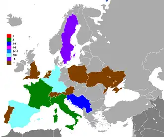 | 1964 | Spanien | nicht qualifiziert | Im Achtelfinale an Schweden gescheitert. | |||