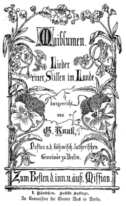- Maiblumen. Lieder einer Stillen im Lande. 2 Bände, 1862 (6. Auflage um 1880: Titelblatt Band 1)