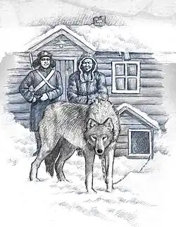 In der Kurzgeschichte „Der Wolf am Vorposten“[14] wird das Leben der Bewohner eines sowjetischen Grenzpostens in der Taiga geschildert, die einen jungen Wolf bei sich aufnehmen. Die Geschichte vermittelt eindrucksvoll den Alltag der Grenzsoldaten vor dem Hintergrund eines aufziehenden Konfliktes. In einer Rezension äußerte sich die Dozentin der Carleton University, R. K. Nazarkulowa, begeistert über das Werk: