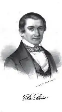 Stein, Sohn eines Naumburger Knopfmachermeisters, besuchte von 1826 bis 1833 das Naumburger Domgymnasium, hat von 1833 bis 1837 in Leipzig und Breslau Philologie studiert und wurde im Februar 1838 mit einer historischen Dissertation in Breslau zum Dr. phil. promoviert. Während seines Studiums wurde er 1833 Mitglied der Alten Leipziger Burschenschaft und 1837 Mitglied der Alten Breslauer Burschenschaft der Raczeks.[1] Anschließend war er von 1838 bis zu seiner Amtsenthebung 1849 bzw. zu seinem Ausschluss aus dem Schuldienst 1854 als ordentlicher Lehrer in der Breslauer Höheren Bürgerschule, Realschule am Zwinger, tätig. 1842 nahm er mit regierungskritischen Beiträgen in der Schlesischen Zeitung als Liberaler den Kampf gegen das preußische Reaktionssystem auf, forderte Pressefreiheit, Öffentlichkeit und Mündlichkeit des Gerichtsverfahrens sowie die Einführung einer Verfassung und eines gewählten Parlaments. Er befasste sich in der zweiten Hälfte der vierziger Jahre zugleich mit der sozialen Frage, wirkte aktiv in der 1845 gegründeten Breslauer städtischen Ressource und näherte sich vor der Revolution zunehmend demokratischen Positionen.